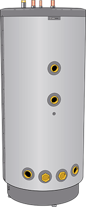 For connection to heat pumps or gas/oil boilers.Підходить для підключення теплових насосів, газових, твердопаливних та котлів на рідкому паливі. Буферна ємність з вбудованим бойлером NIBE VPA може підключатись до будь-якої моделі теплового насоса без бойлера для виробництва великої кількості гарячої води. NIBE VPAS оснащений мідним змійовиком для підключення до сонячних колекторів і використовується як для нагрівання гарячої води так і для опалення.
